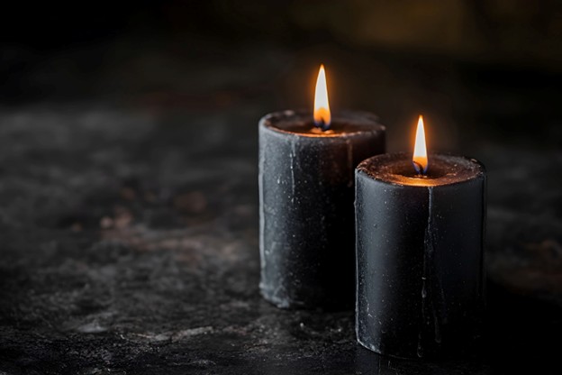 เช่น เทียนดำ ผ้าขาว หรือดอกไม้สีขาวล้วน เช่น ดอกลิลลี่หรือเบญจมาศ