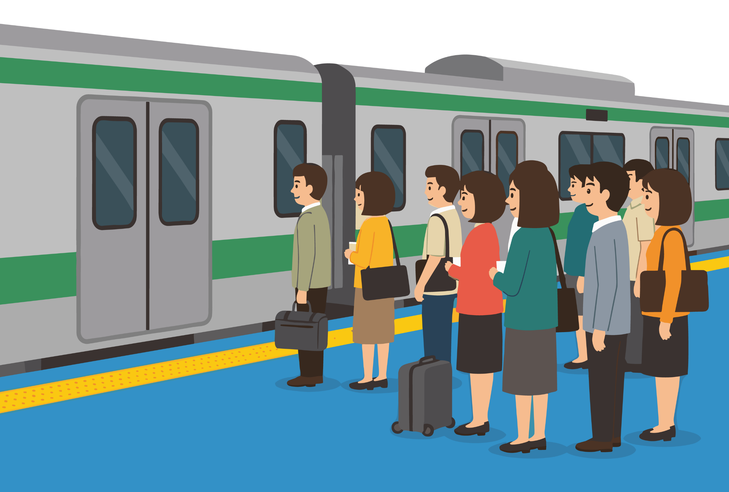 คนญี่ปุ่นจะยืนเข้าคิวตามเส้นบนพื้น ไม่มีการดันเข้าหรือออก ขึ้นเร็วและลงด้วยความรวดเร็ว และไม่ยืนขวางประตูครับ โดยสิ่งเหล่านี้จะช่วยในการประหยัดเวลาได้ค่อนข้างมากเลยทีเดียวครับ