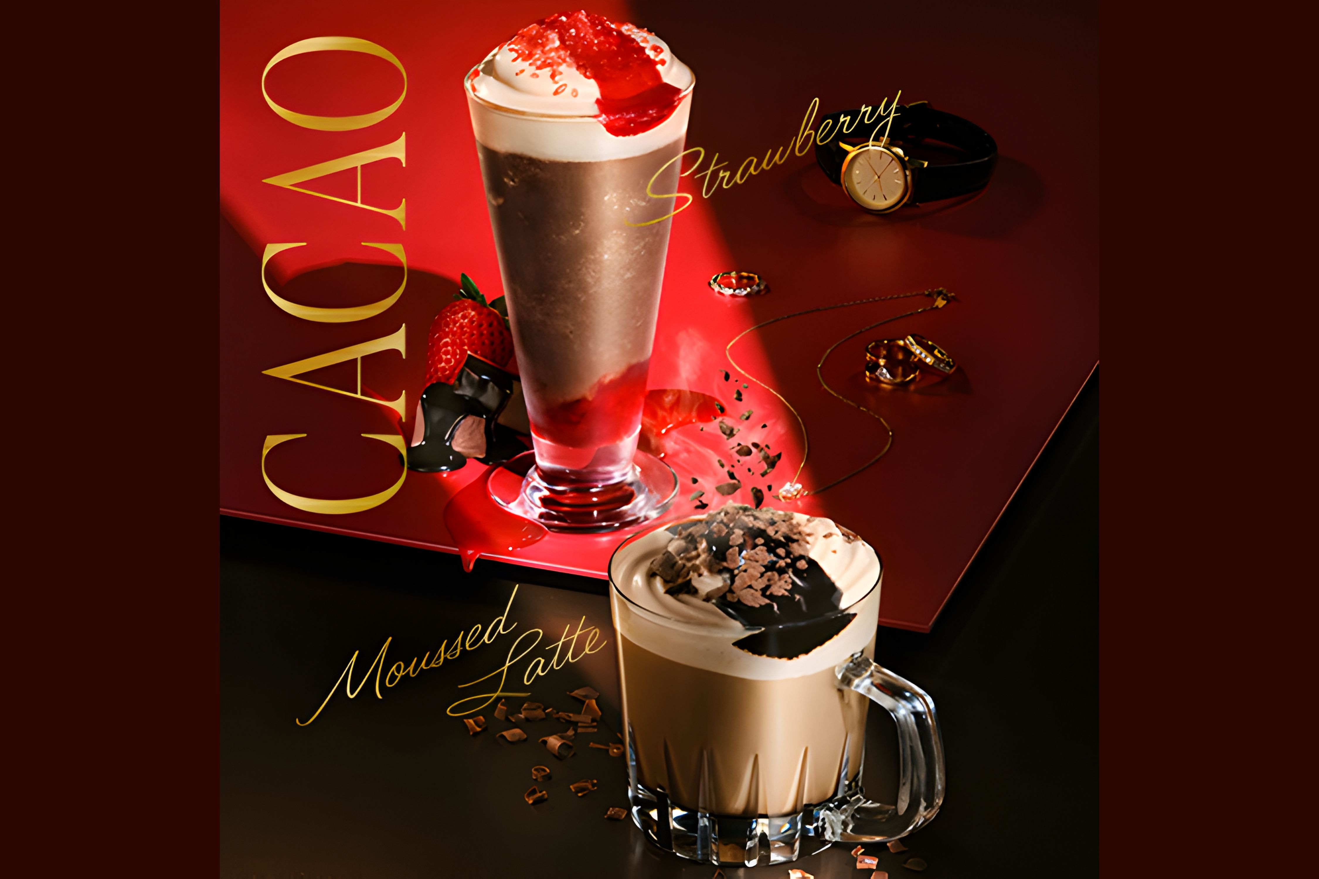 ก้นถ้วยเต็มไปด้วยเนื้อสตรอว์เบอร์รีหวานอมเปรี้ยว ราดด้วยครีมโกโก้เนื้อเนียน ให้รสชาติกลมกล่อม เข้มข้น และเนื้อสัมผัสเนียนนุ่มคล้ายเจลาโต้ เติมน้ำเชื่อมรสเฮเซลนัทเพื่อเพิ่มมิติให้กับรสชาติ มีรสชาติโกโก้เข้มข้นแต่ไม่เลี่ยน ด้านบนตกแต่งด้วยมูสช็อกโกแลตที่ทำจากซอสช็อกโกแลต เคลือบด้วยเบอร์รี่สีแดงหวานอมเปรี้ยว และโรยด้วยลูกอมรสสตรอว์เบอร์รีบด รสชาติสตรอว์เบอร์รีที่คุ้นเคยถูกเสริมด้วยรสชาติหวานอมเปรี้ยวของเบอร์รี่สีแดง สีแดงเข้มเพิ่มความโดดเด่นให้กับเครื่องดื่มแสนสวยนี้ ชวนให้นึกถึงบรรยากาศพิเศษในวันวาเลนไทน์